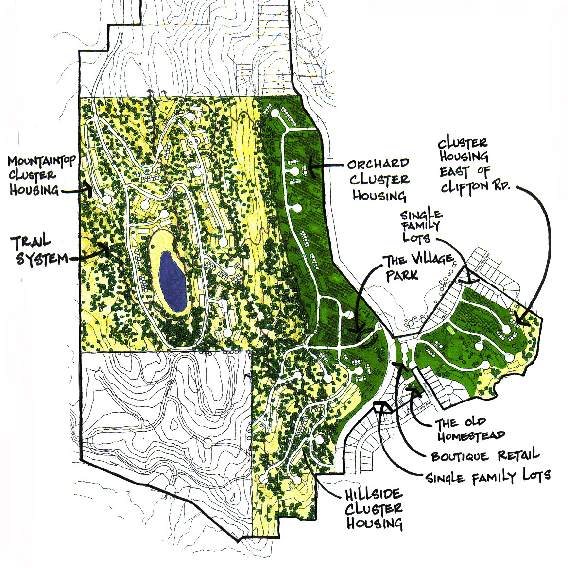 Mountain Village Knox Mountain Village is a comprehensively planned and designed residential community. The plan is focused around an open space system that links the site to Knox Mountain Park, preserves natural environmental features and recognizes hazardous areas. |